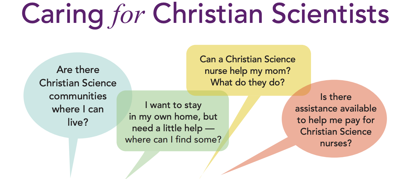 This site offers information on housing, personal or household assistance, Christian Science nursing and care facilities, insurance, legal issues related to health care, and more. Wherever possible, we have included resources that are specifically affiliated with Christian Science.